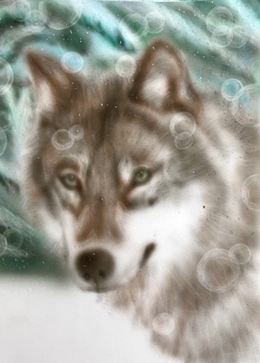 大阪市 はなちゃん様 「白銀の狼」 A4(約21×30cm) 水性ウレタン |