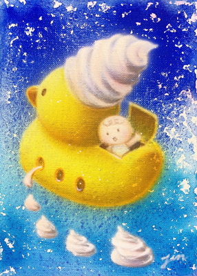 大阪府八尾市 さとな様 「蒼に遊ぶ」 キャンバス(約16×23cm) 水性ウレタン塗料 |