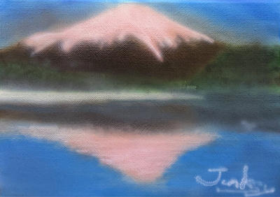 大阪府東大阪市 石黒愛果さま 「パール富士」 A4(約21×30cm) 水性ウレタン、アクリル絵の具 筆も併用 透明アクリルが2枚あり、そこにペイントしているので奥行きがあります。 |