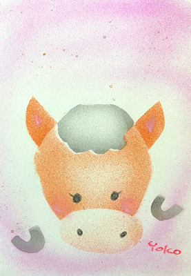 大阪府箕面市 yoko 様 「午年の年賀状」 ハガキサイズ 水彩絵の具 |